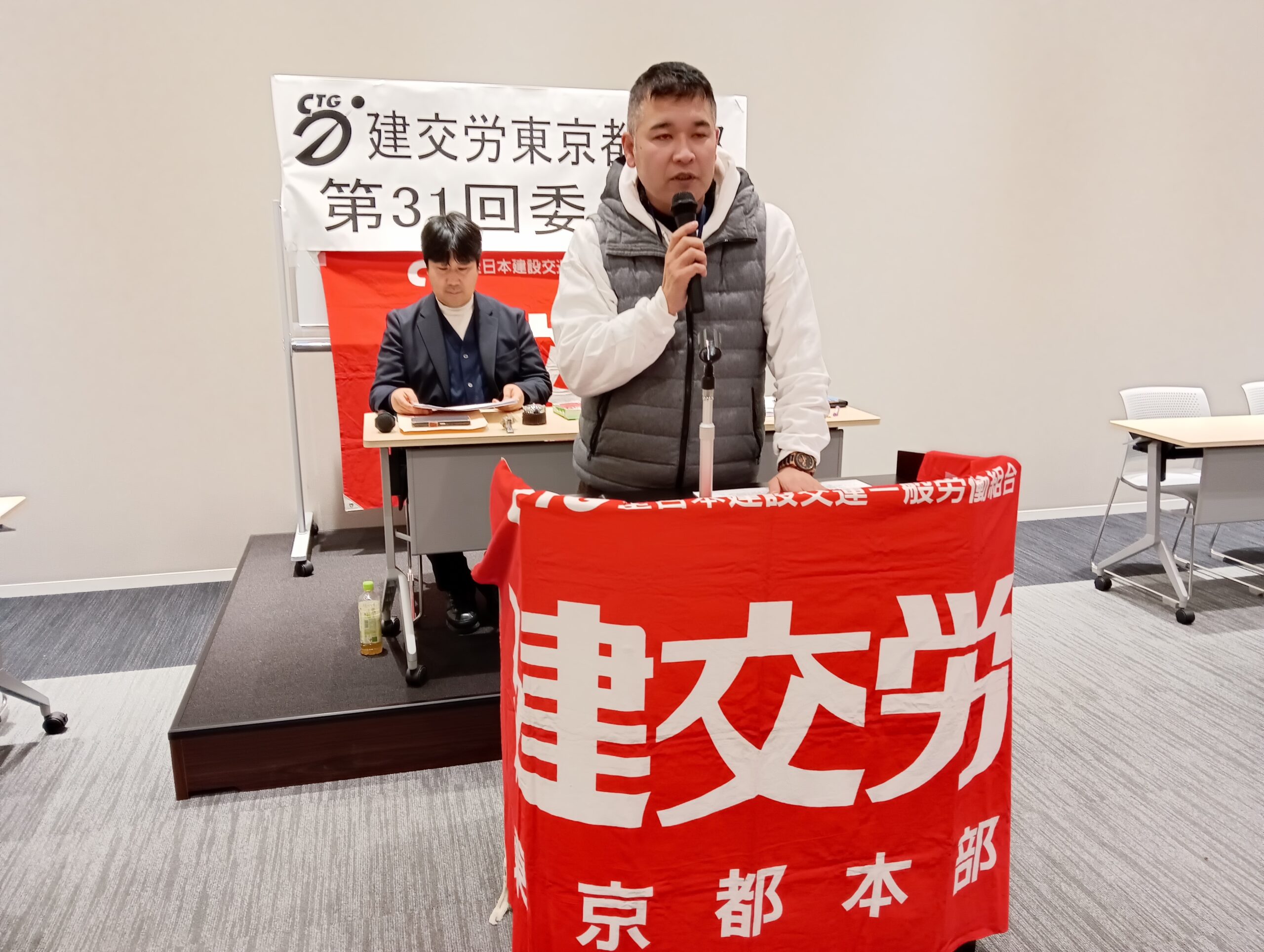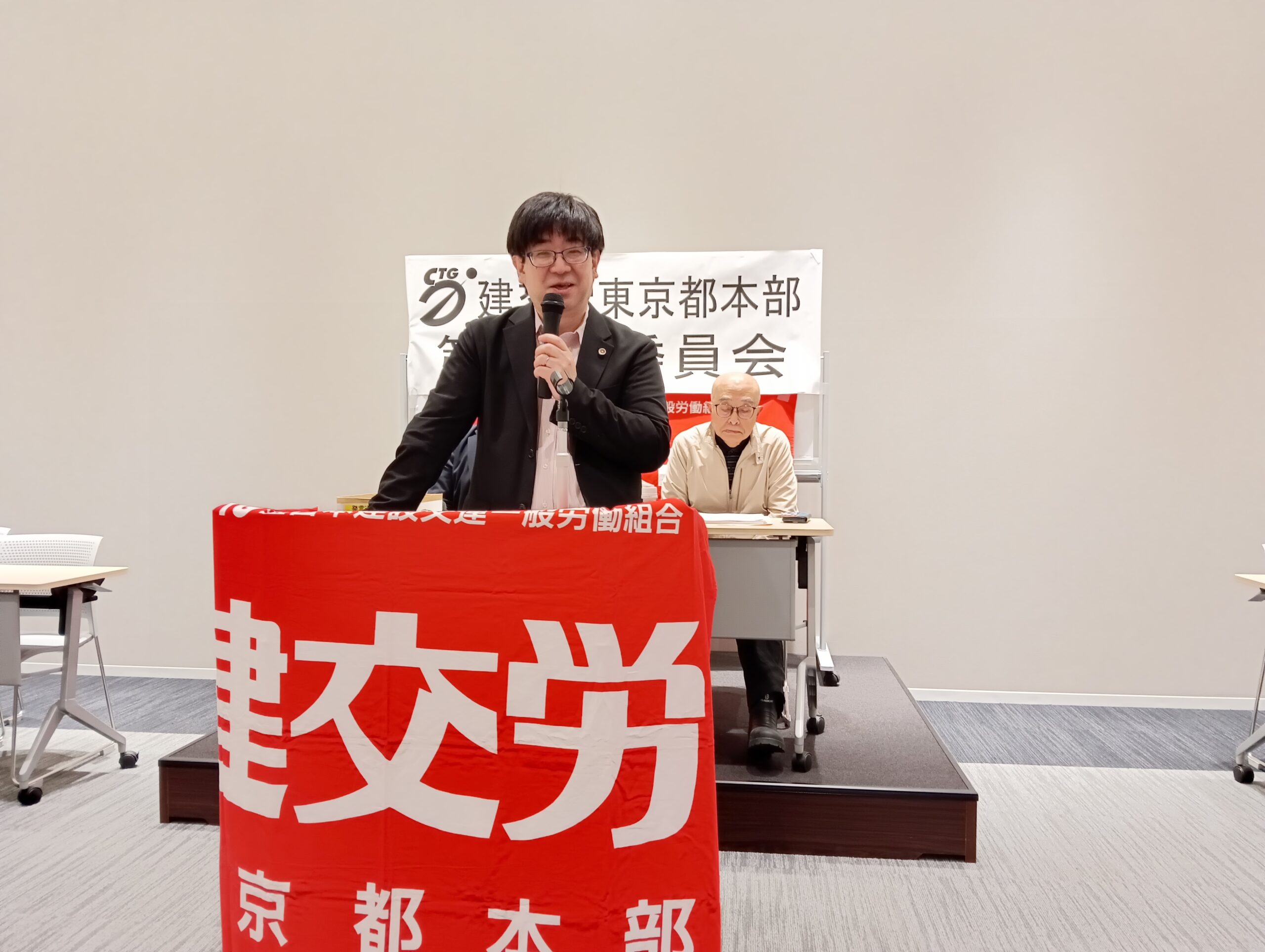 建交労東京都本部は2月8日(日)、春闘方針を決議する第31回都本部委員会を東京トラック健保会館で開催しました。前日からの積雪で足元が悪い中での開催となりました。参加された仲間のみなさん、寒い中大変お疲れ様でした。主催者を代表して挨拶した石塚執行委員長代行は「26春闘の方針を決定する機関会議で是非活発な討論をお願いします。同時に衆議院解散総選挙の投票日となった。国会の冒頭解散は高市総理の暴挙と言える。自民圧勝の予測報道に小選挙区制度の問題を感じる。アメリカトランプ政権による内政干渉や武力行使に国連主導の世界を取り戻す必要がある。必ず投票にいきましょう。」と呼びかけました。東京都本部顧問弁護士の笹山尚人弁護士に「ハラスメント対応の考え方」と題して、主に労働組合内でのハラスメントを事例に講演をいただきました。笹山弁護士は「ハラスメントの場面で守られるべき法的利益は人格権(憲法第13条の幸福追求権の一環)である」とし、日本における現状のハラスメントに関する法律は総じて未熟であり「加害者の行為からではなく、被害者の結果から構想する必要がある」と強調されました。文書発言含め4名の仲間から26春闘の取り組みや意気込みについて発言がありました。松崎常任執行委員による春闘宣言(案)の読み上げの後、1号~4号議案が全会一致で採択されました。26春闘は共にたたかう仲間の奮闘を感じながら、日々の運動に確信を持って前進を勝ち取りましょう。